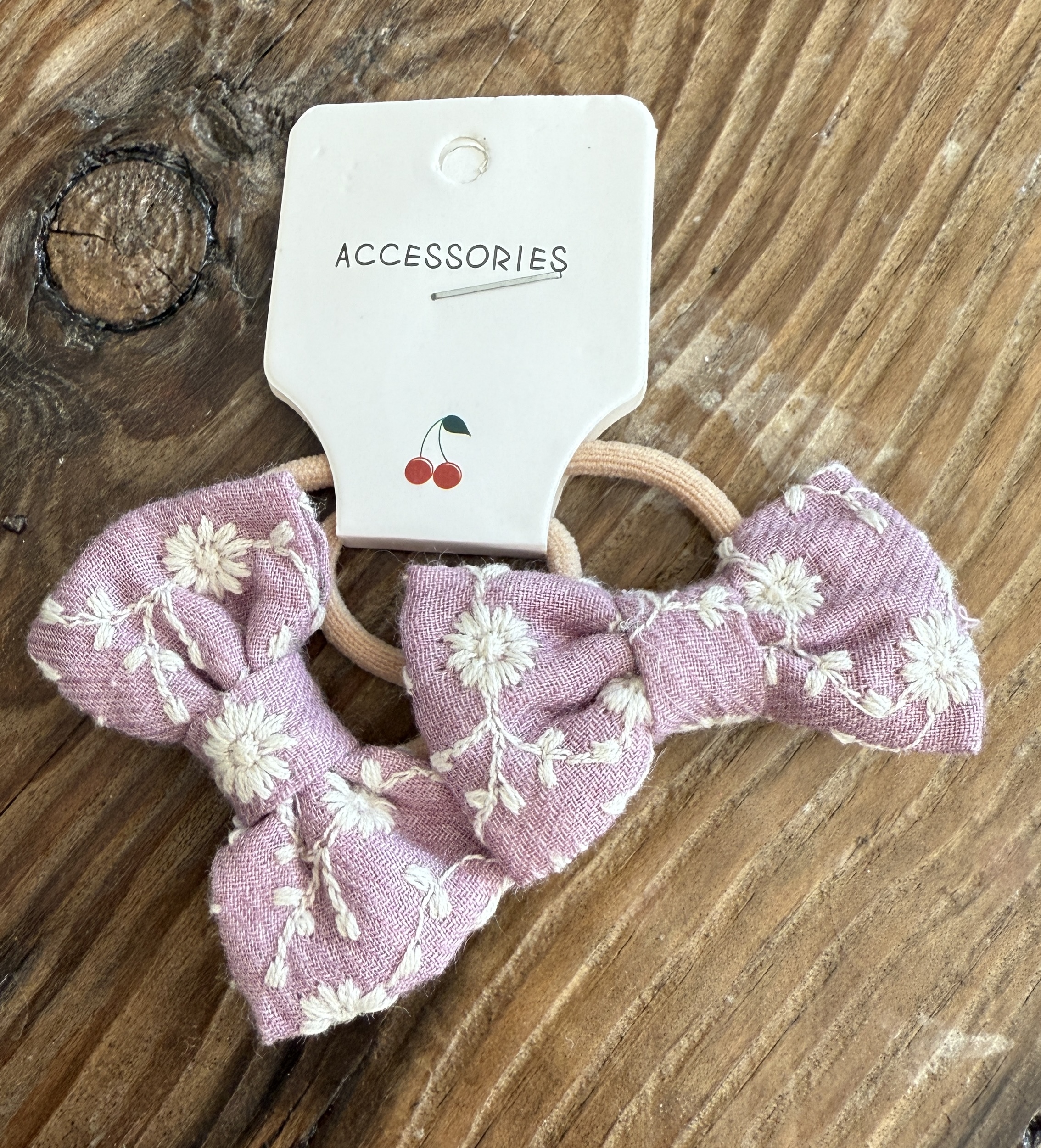 2 stk. Søde sløjfe hårelastikker - Lilla med hvide blomster