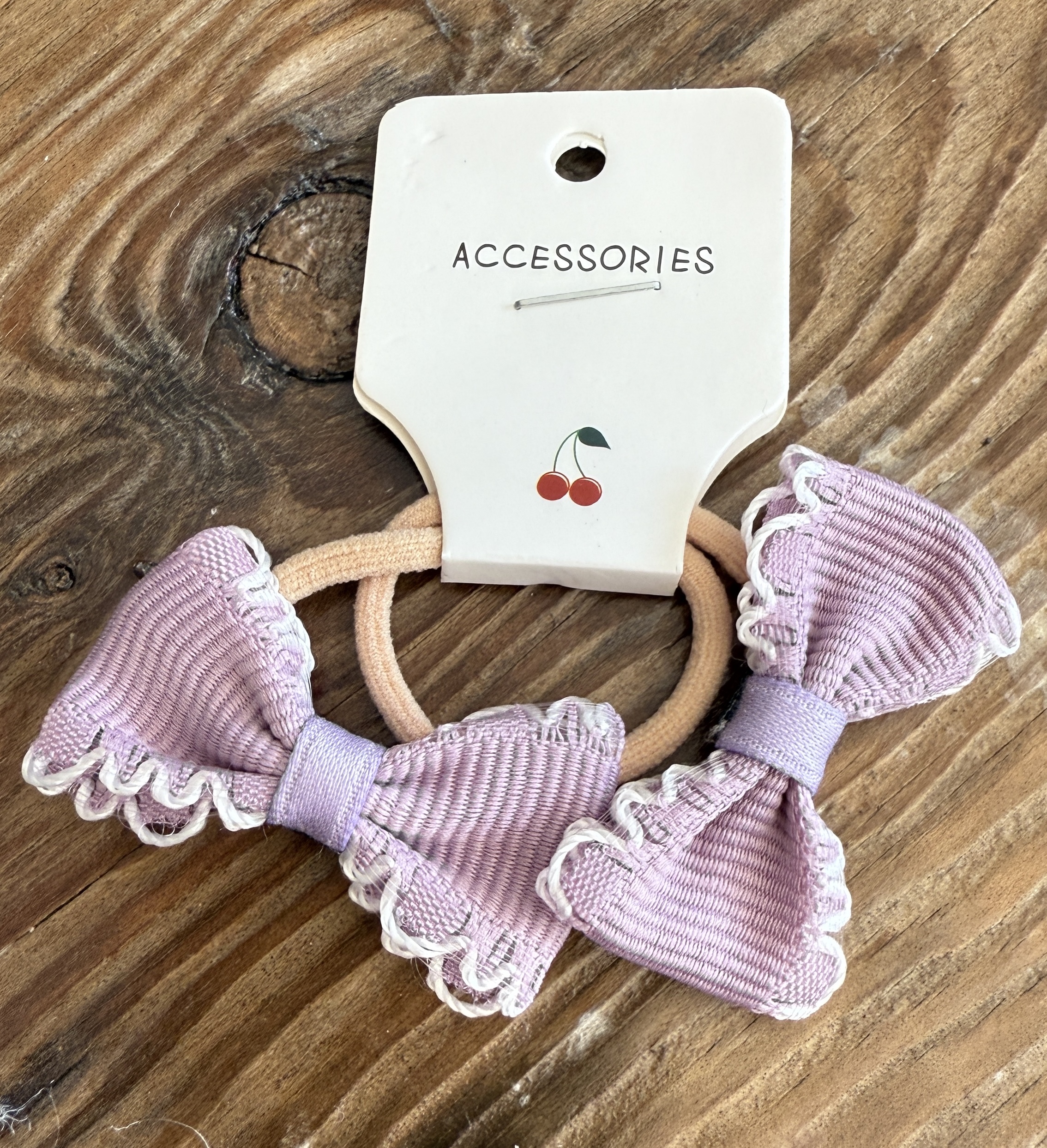 2 stk. Søde sløjfe hårelastikker - Lilla med hvide kanter