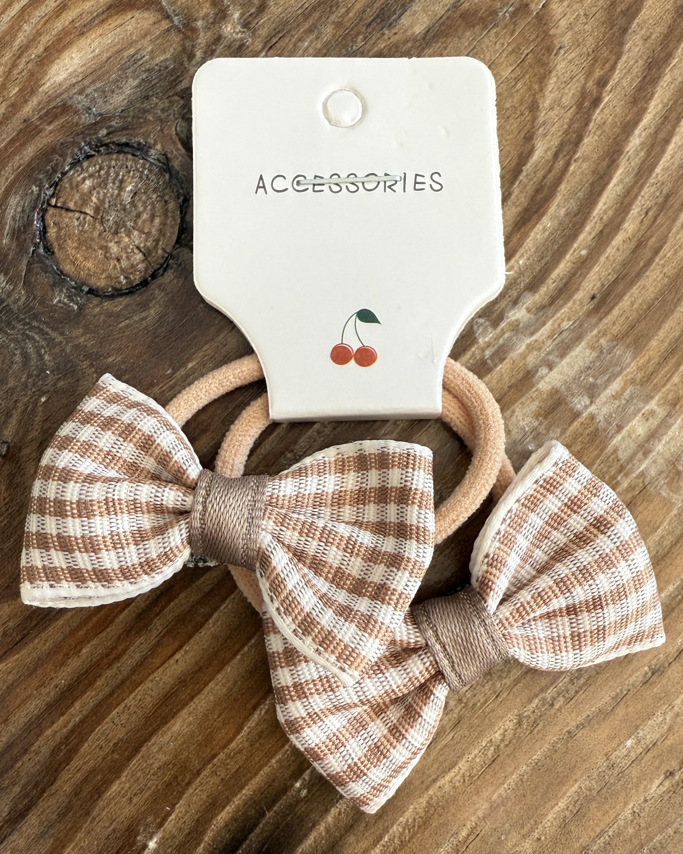 2 stk. Søde sløjfe hårelastikker - Brune tern