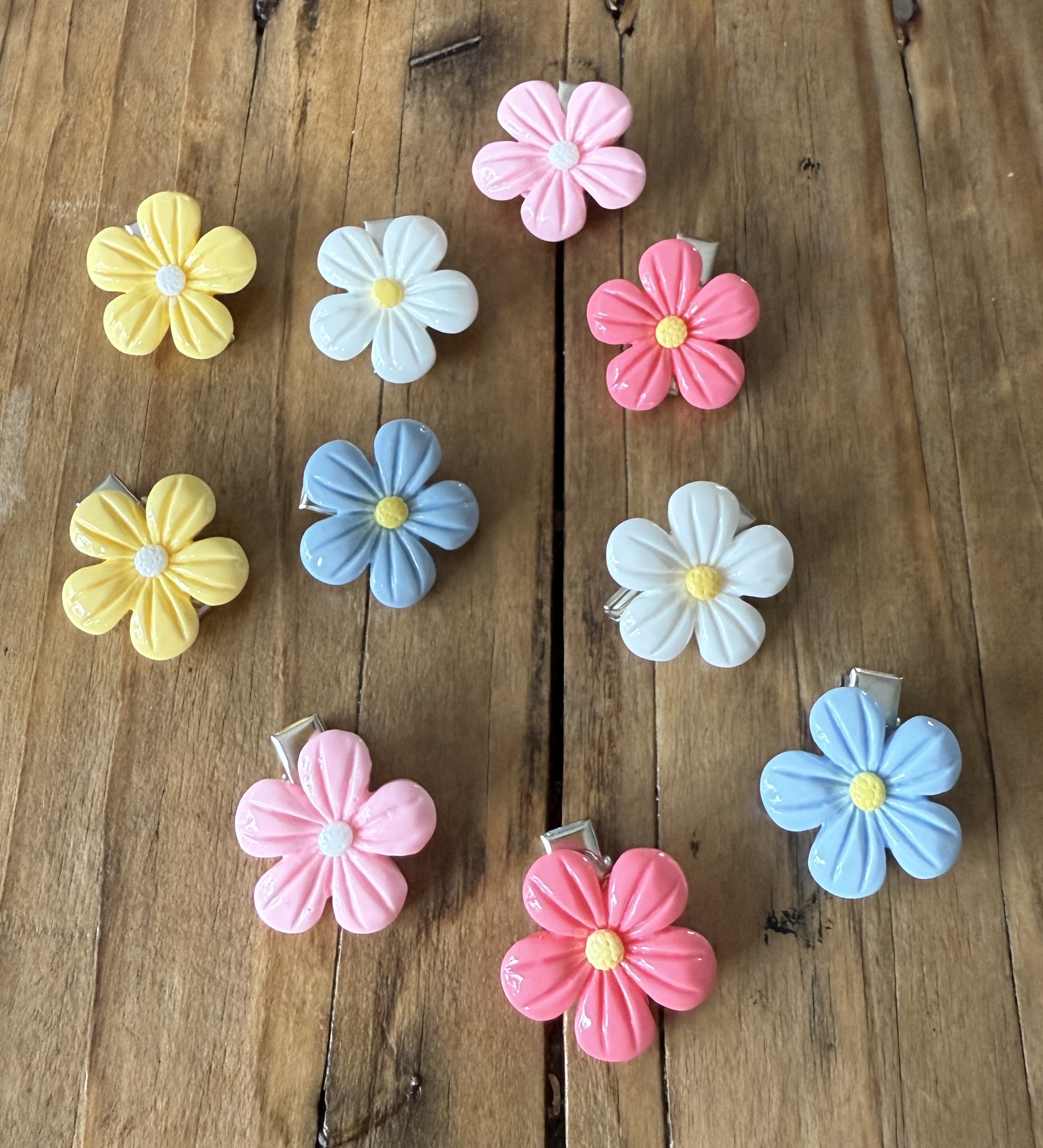 Opdag vores elegante sæt med 10 stk. søde blomster hårspænder, designet til at tilføre et kunstnerisk præg til dit barns frisure med stilfuld charme og farverig flair.