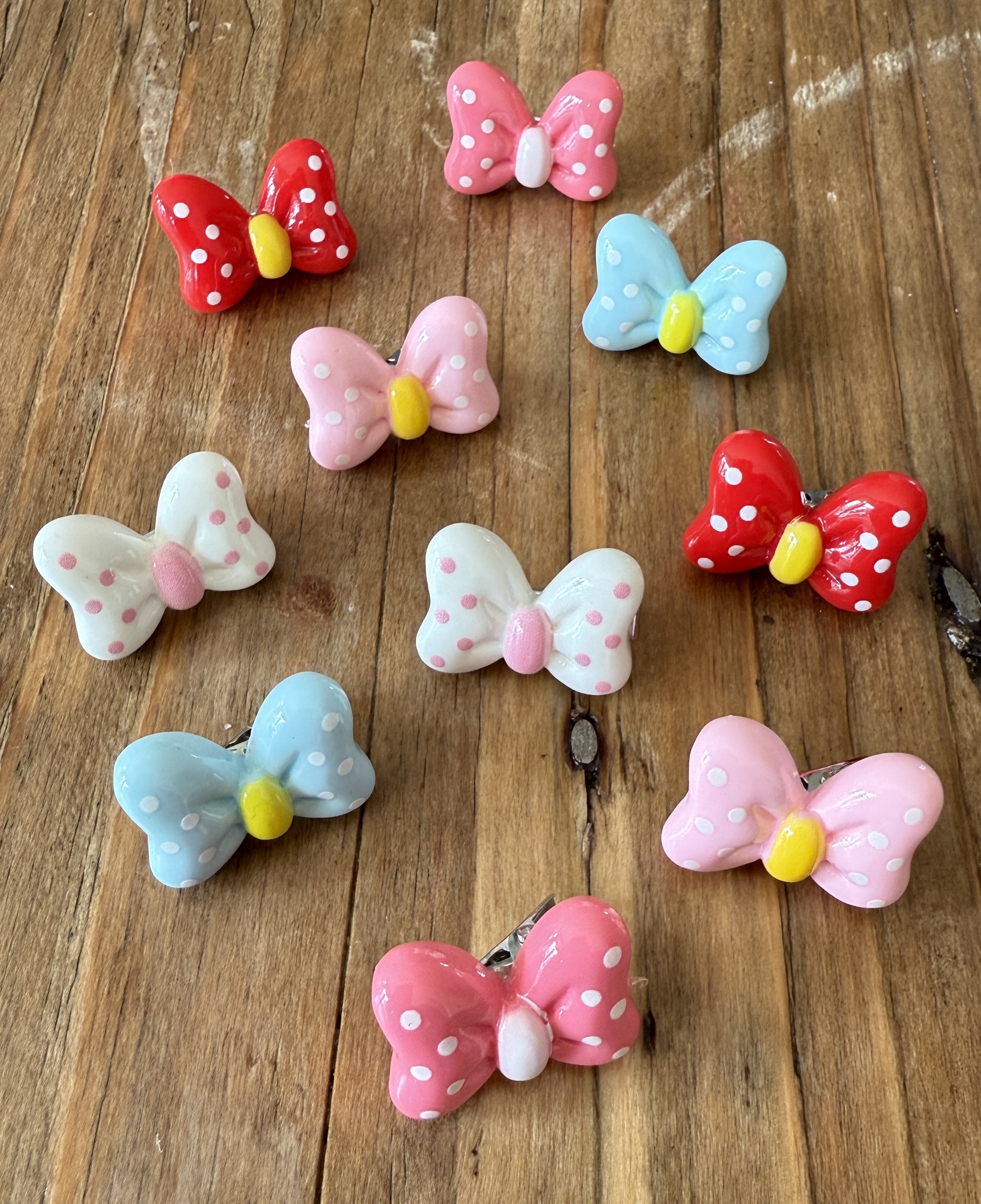 Opdag vores elegante sæt med 10 stk. søde sløjfe hårspænder, designet til at tilføre et kunstnerisk præg til dit barns frisure med stilfuld charme og farverig flair.