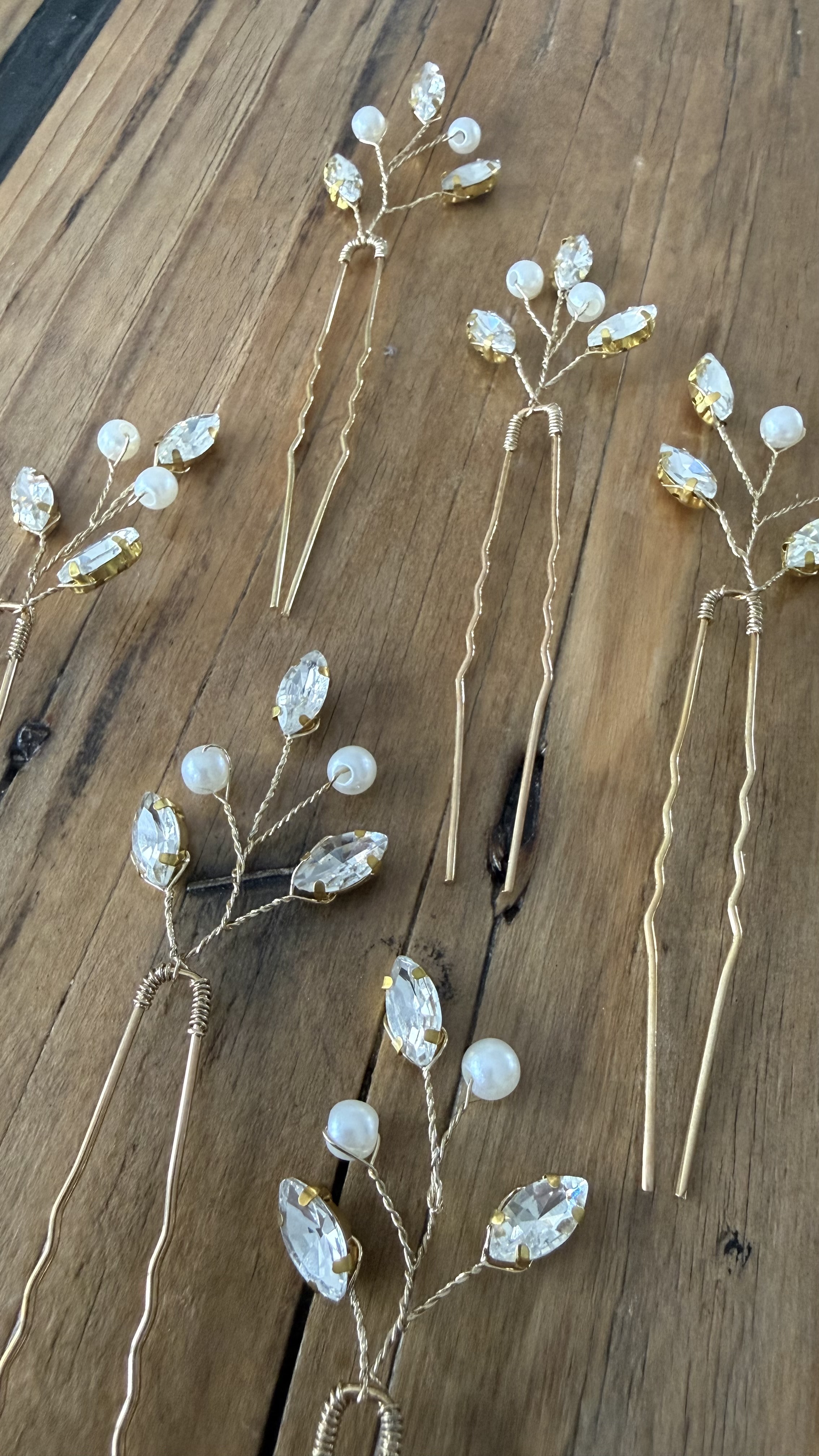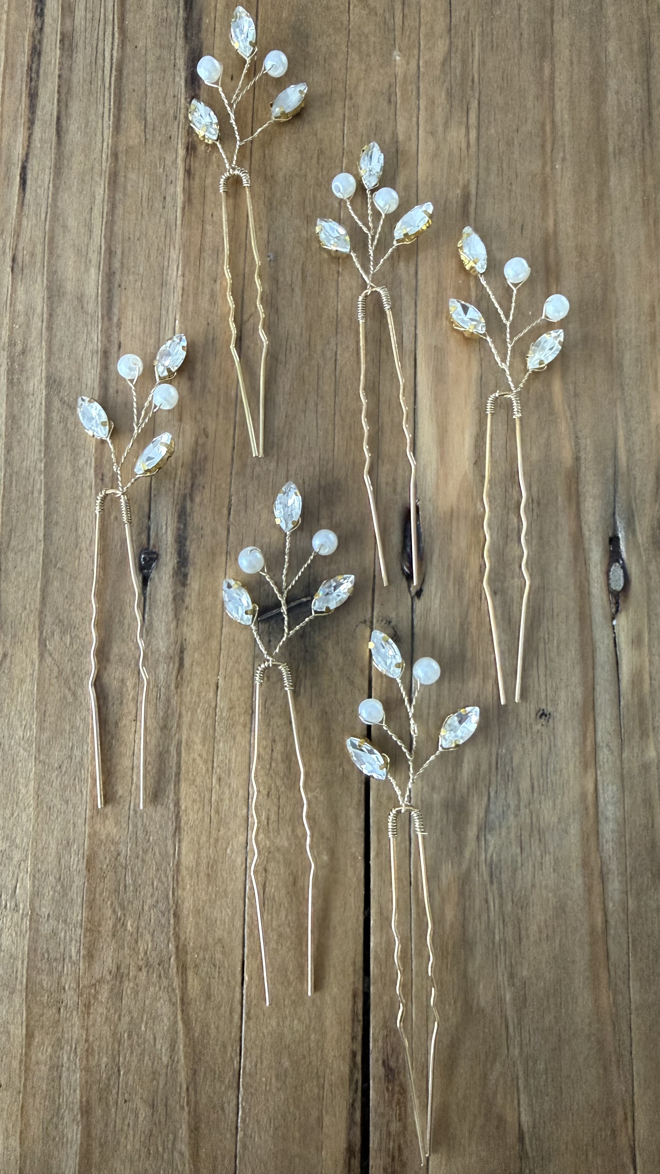 Hårnålene kan bruges enkeltvis for et diskret look eller kombineres for et mere fyldigt og dekorativt udtryk. Perfekte til bryllup, konfirmation, galla og fest.