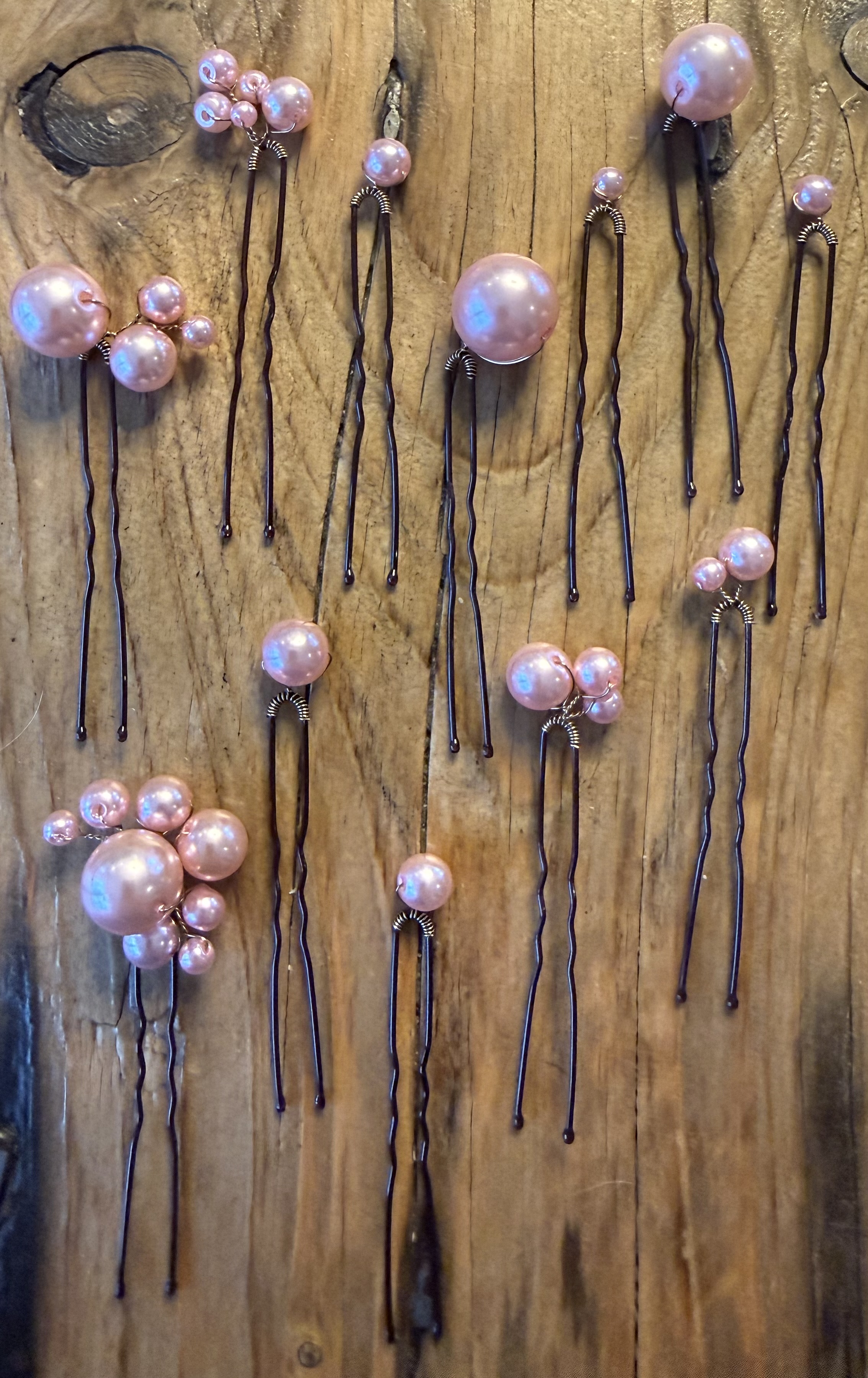 Tilføj et elegant og tidløst touch til håret med dette smukke sæt af 12 perlehårnåle, ideelle til både bryllup og konfirmation. De fine perler giver et romantisk og klassisk udtryk, der passer perfekt til opsatte frisurer, fletninger eller løst hår.
