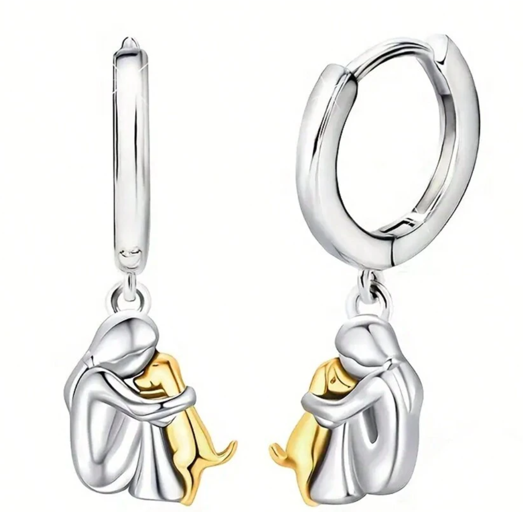 Oplev vores smukke øreringe til hundeelskere – en forgyldt pige med sin hund i sølv. Et unikt statement for den stilfulde hundeejer, der værdsætter elegance og kærlighed.