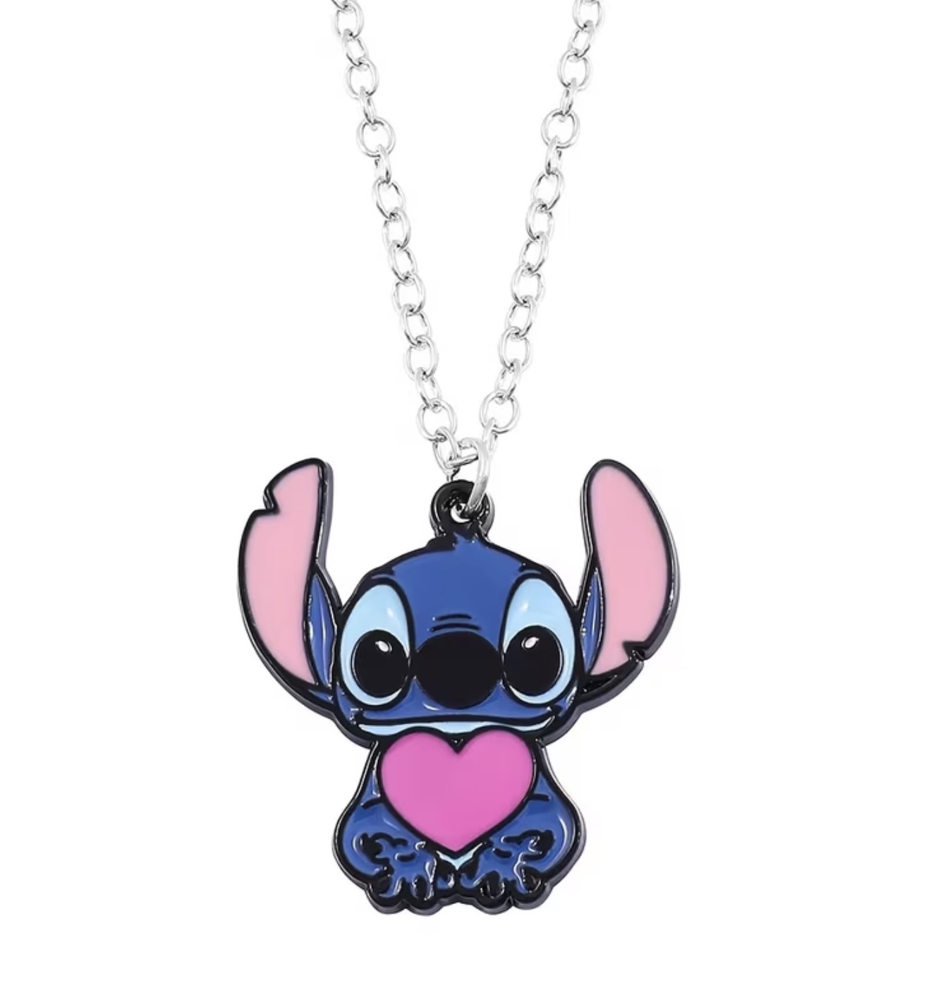 En super kær halskæde med et farverigt Stitch-vedhæng, hvor han holder et pink hjerte. Perfekt til både børn og alle, der elsker den søde og sjove figur.