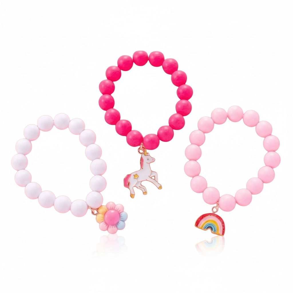 Opdag vores trio af armbånd til børn, prydet med charmerende vedhæng og farverige perler. Perfekte til at udsmykke børns håndled med legesyg stil og kreativitet.