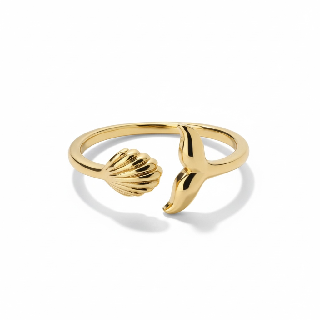Denne smukke justerbare ring er inspireret af havets former og detaljer. Ringen prydes af en fin musling og en elegant, bølgende form, der tilsammen skaber et feminint og moderne udtryk. Det åbne design gør ringen let at tilpasse, så den sidder behageligt på fingeren.