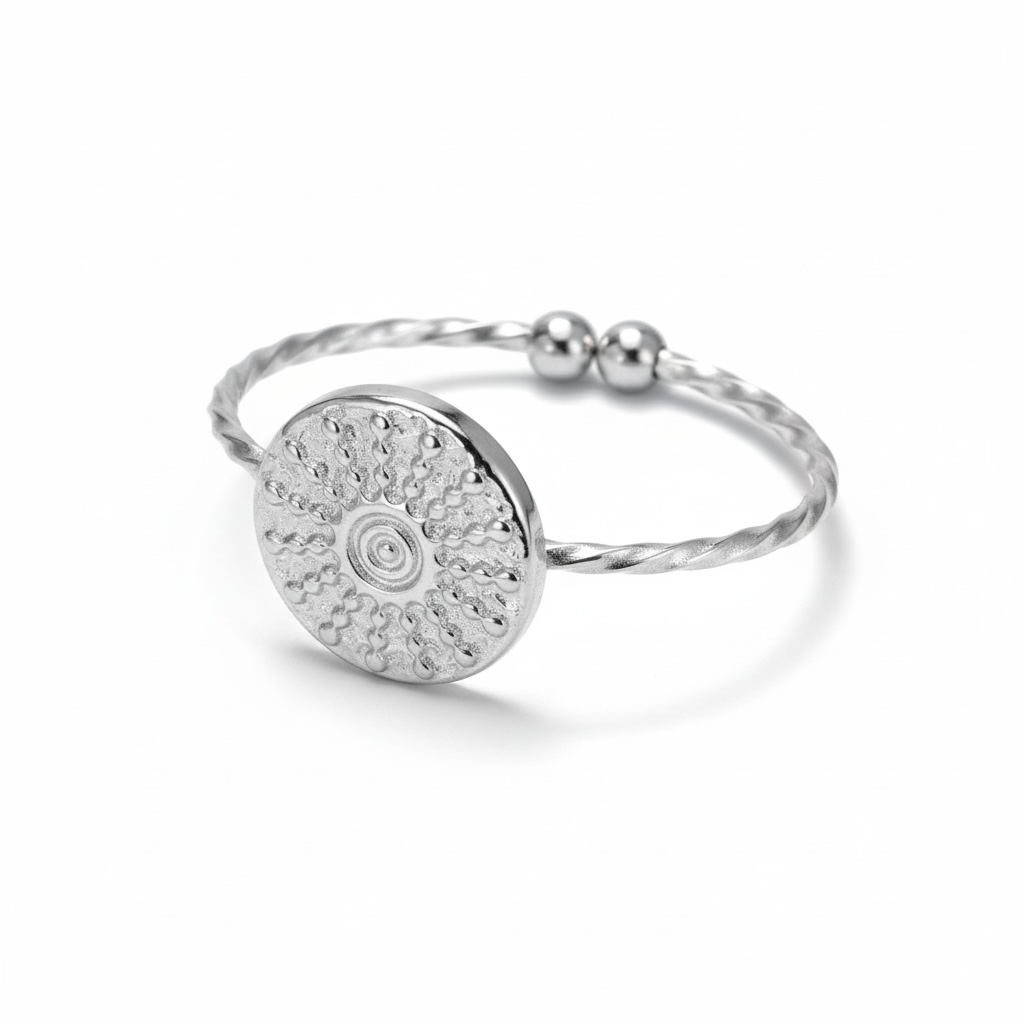 Oplev vores justerbare ring med hamret mønster, der kombinerer tidløs elegance med moderne design. Ideel til enhver lejlighed, tilbyder denne ring en unik tekstur og personlig tilpasning.