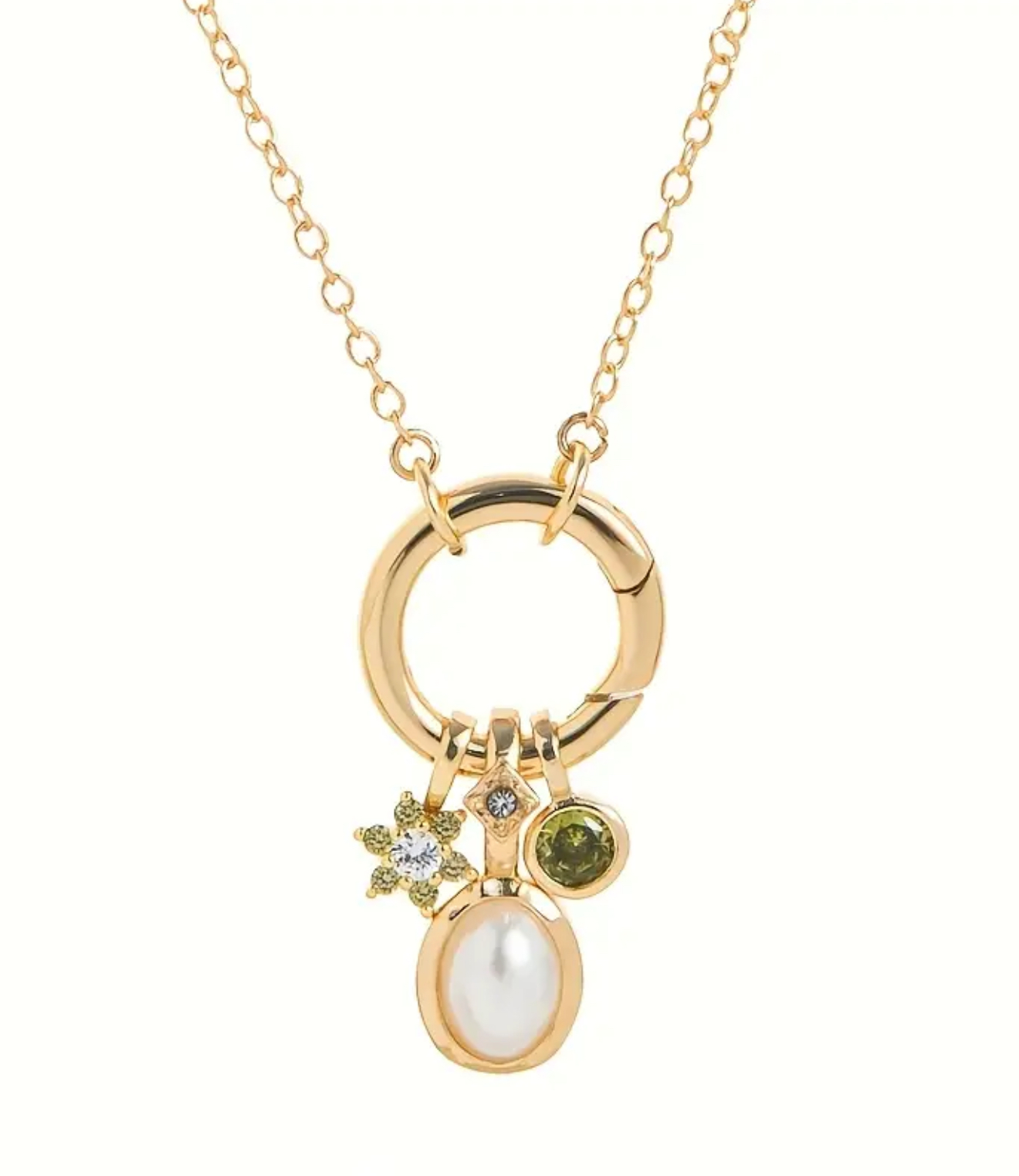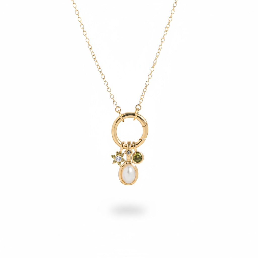 Halskæde med de smukkeste grønne sten - Forgyldt