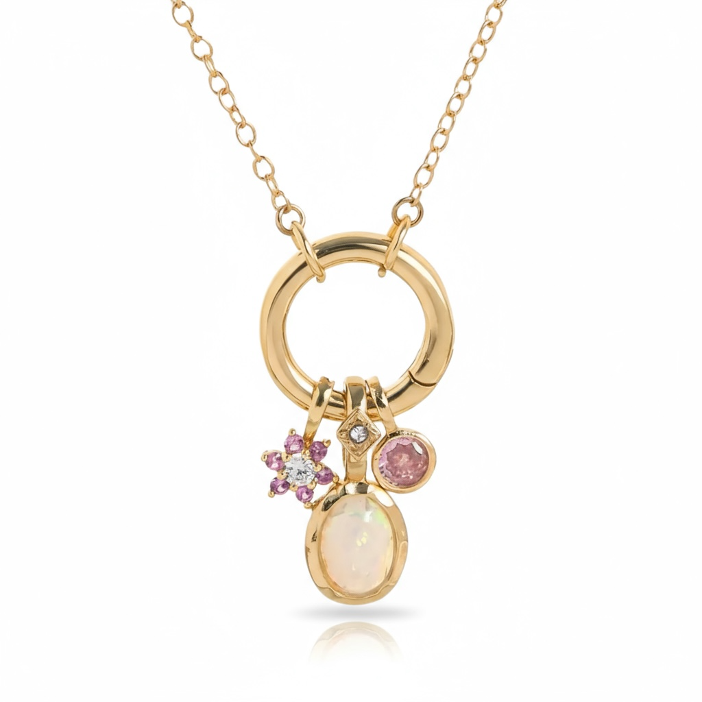 Halskæde med de smukkeste lyserøde sten - Forgyldt