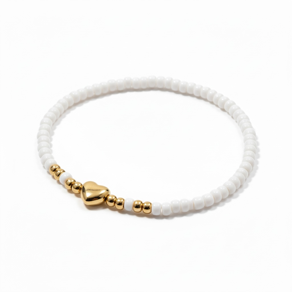 Hvidt elastikarmbånd med guldfarvet hjerte
