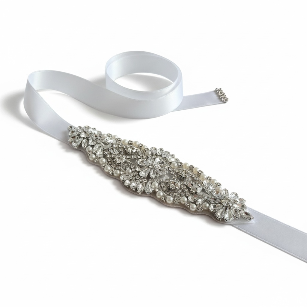 Elegant bælte med perler og krystaller – til bryllup & konfirmation