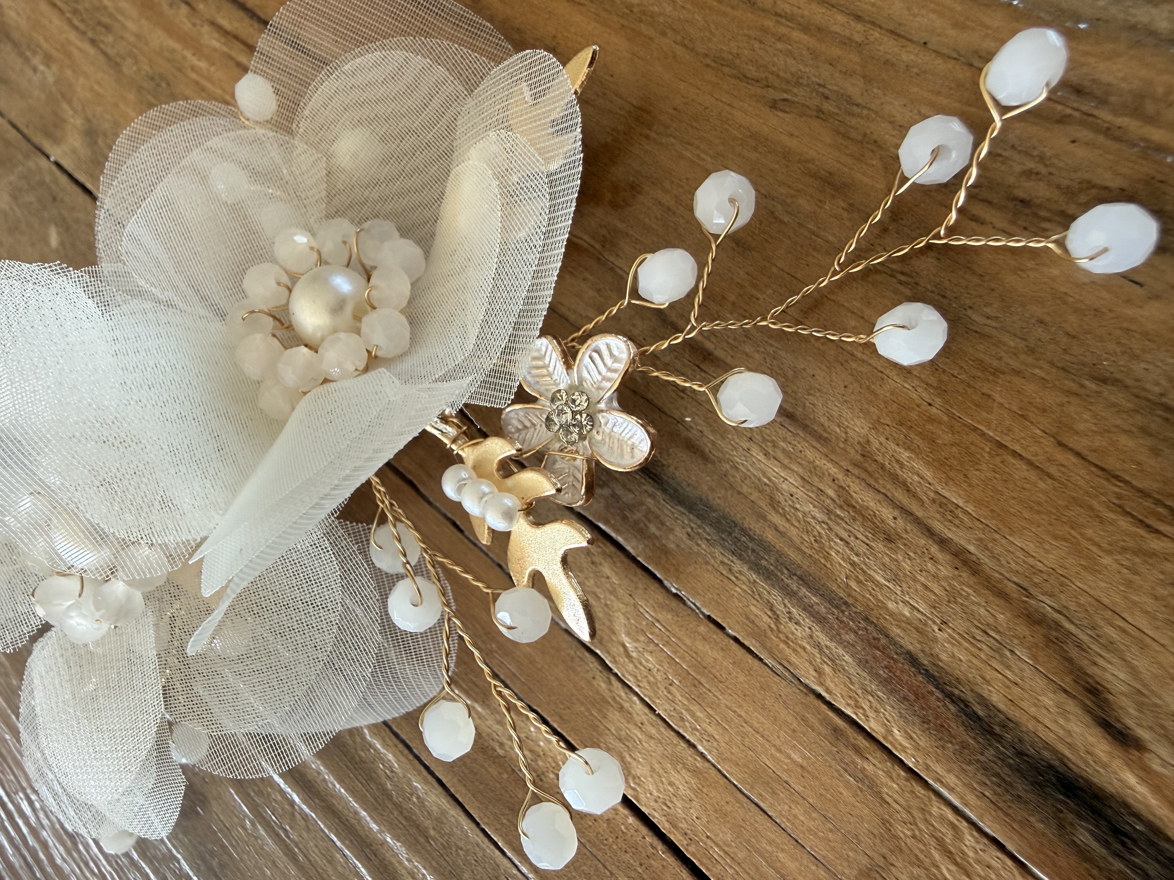 Skab en uforglemmelig stil med vores smukke hårclips, perfekt til konfirmanden eller bryllupspigen. Udsmykket med hvide perler og søde blomster. De tilføjer et elegant touch til enhver festlig lejlighed. Vores unikke design forener raffinement og charme, så du kan stråle med selvtillid på din store dag.
