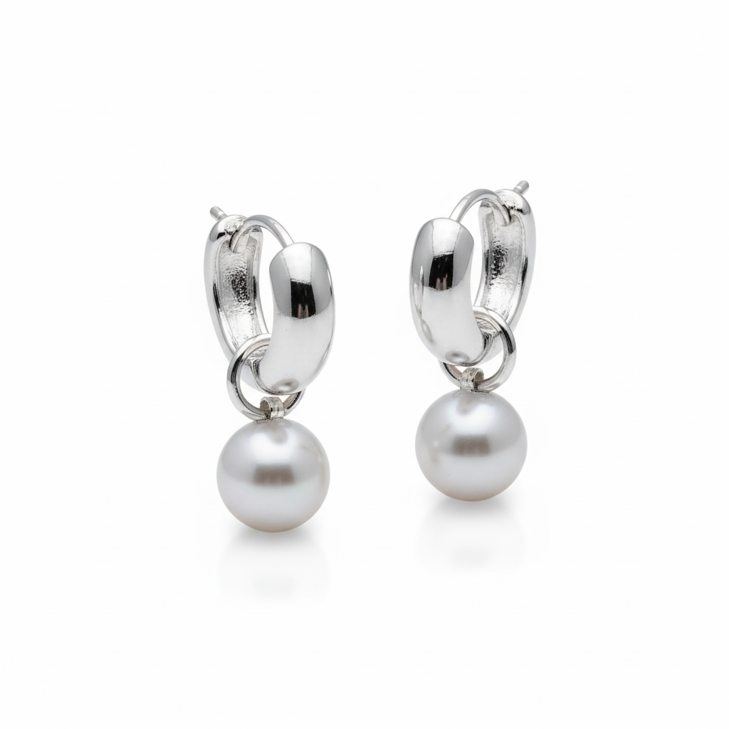 Elegante og tidløse hoop-øreringe i sølvfarvet finish med en smuk, rund perle. Det enkle design fremhæver perlens bløde glans og giver et klassisk udtryk, der passer perfekt til både hverdag og fest.