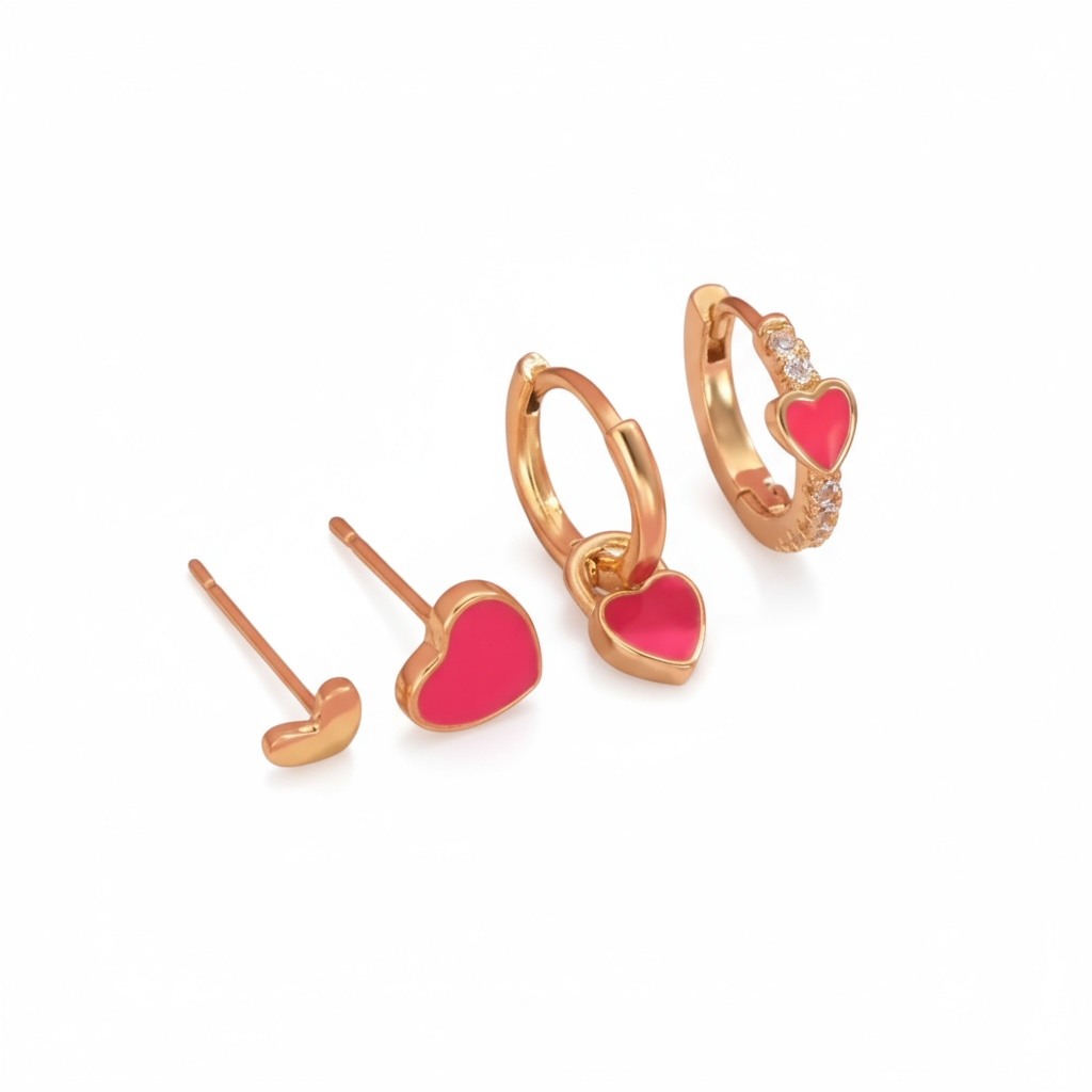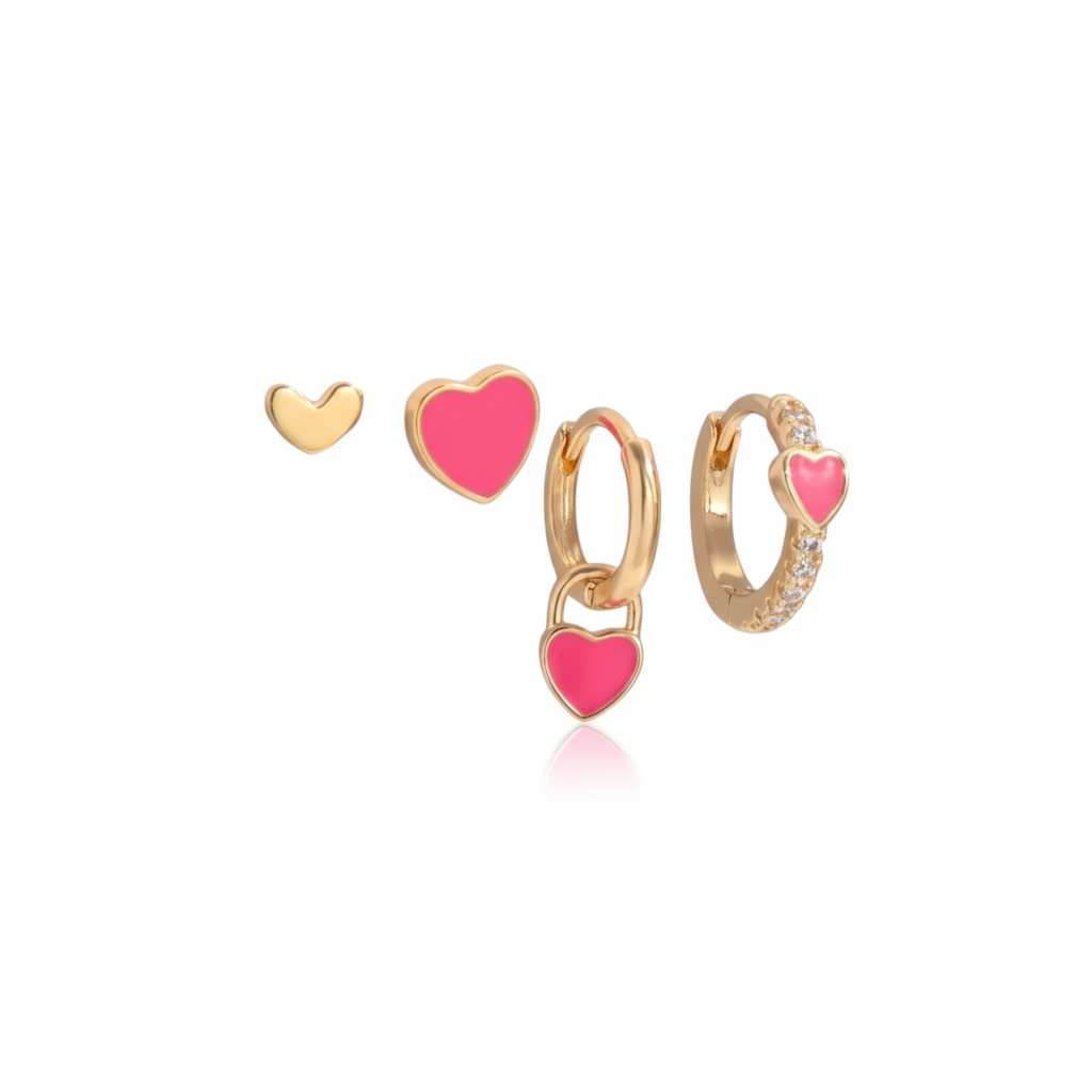 Disse forgyldte øreringe prydes med pinke hjerter og zirkonia sten, der tillægger ethvert outfit en elegant og legesyg detalje. Perfekte til både hverdagsbrug og festlige anledninger.