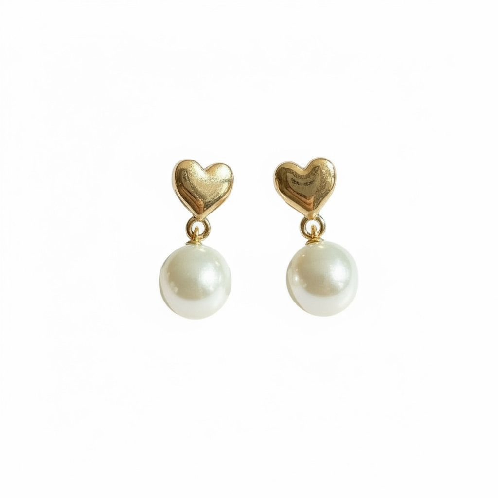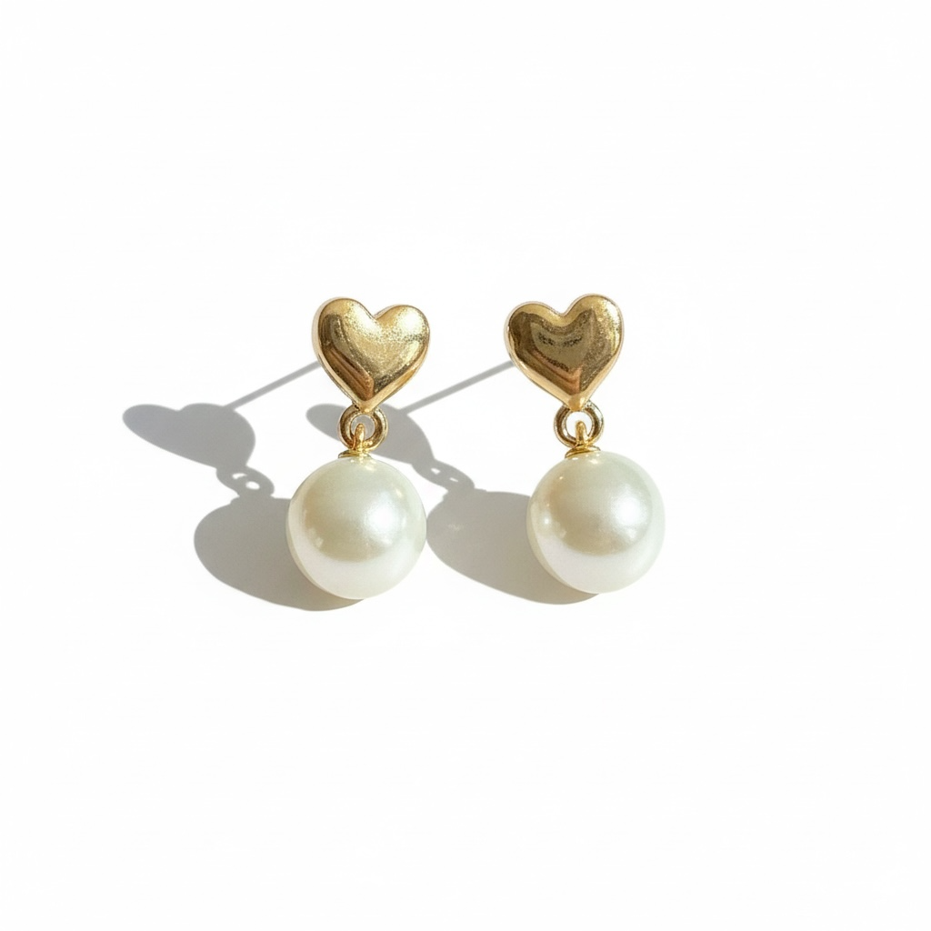 Disse elegante øreringe har et klassisk og feminint design med et lille, blankt hjerte øverst og en rund, hvid perle, der hænger let under. Kombinationen af hjerte og perle giver smykket et tidløst og romantisk udtryk, som passer til både hverdag og festlige anledninger.