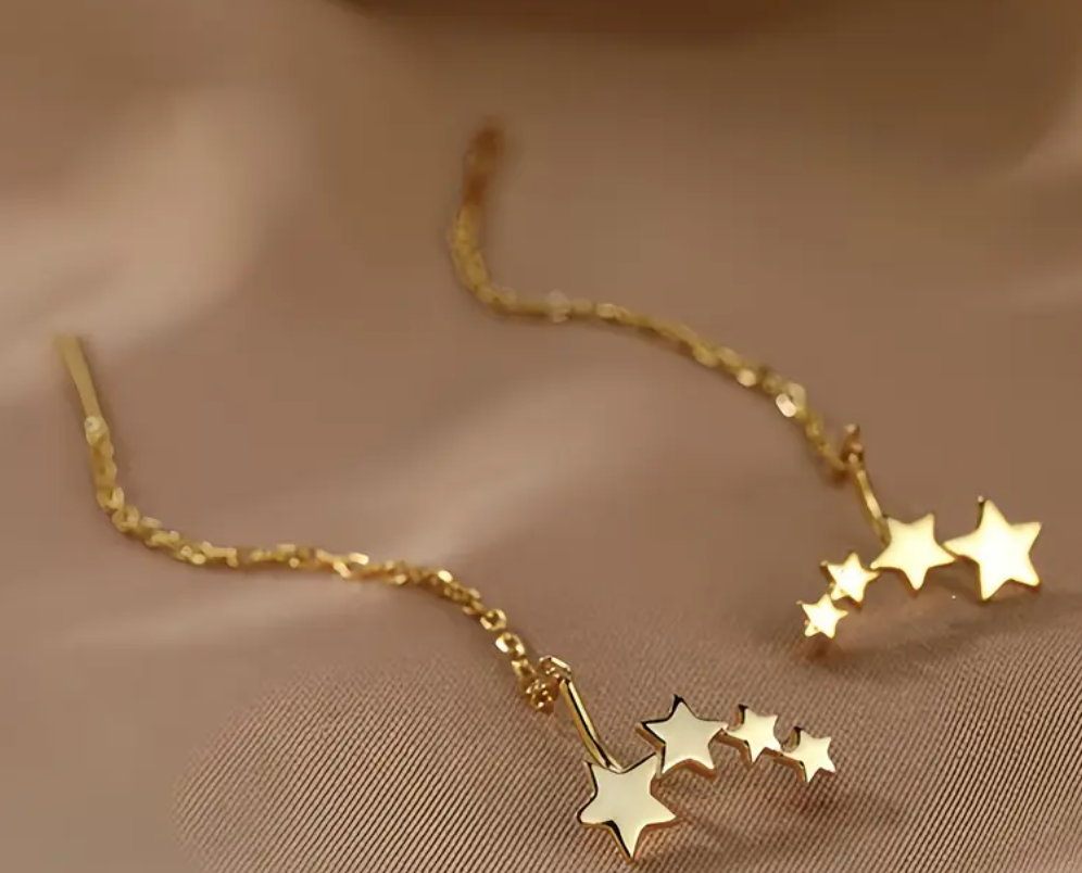 Præsentér din stil med disse søde, forgyldte øreringe, prydet med en elegante stjerner. Ideelle til enhver lejlighed, de tilføjer et subtile touch af raffinement til din garderobe.