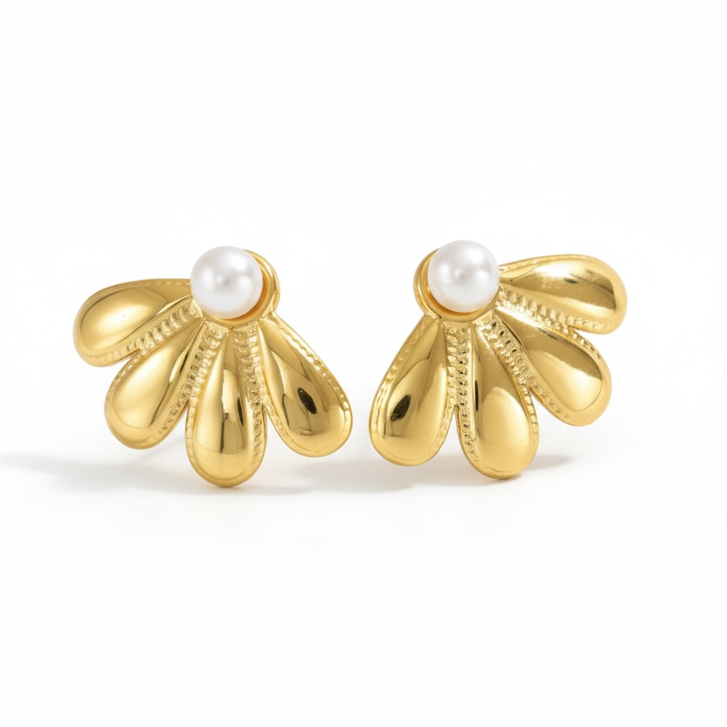 Oplev vores smukke øreringe med en blomstedesign og en elegant hvid perle. Dette unikke smykke tilføjer et sofistikeret touch til ethvert outfit og fremhæver din personlige stil.