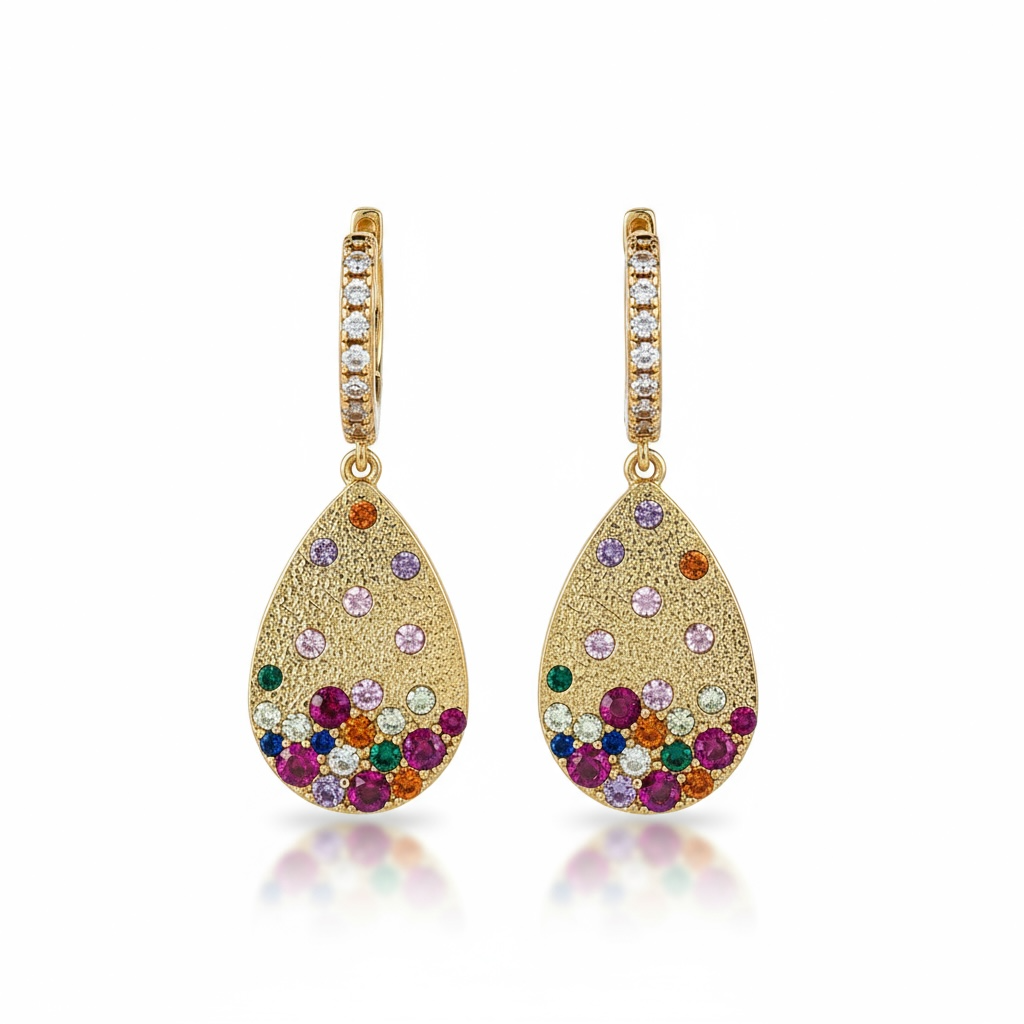 Elegante hoops prydet med det flotteste vedhæng med farvet zirkonia-sten. Disse smykker kombinerer tidløs stil med imponerende glans, perfekt til enhver lejlighed og til at fremhæve din unikke skønhed.