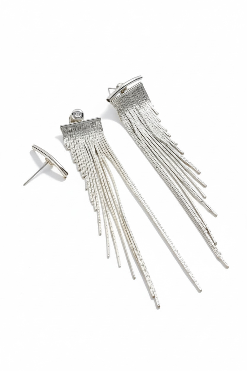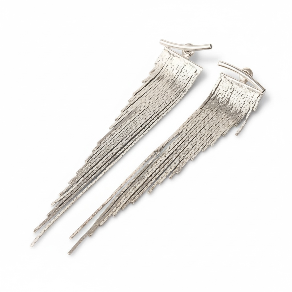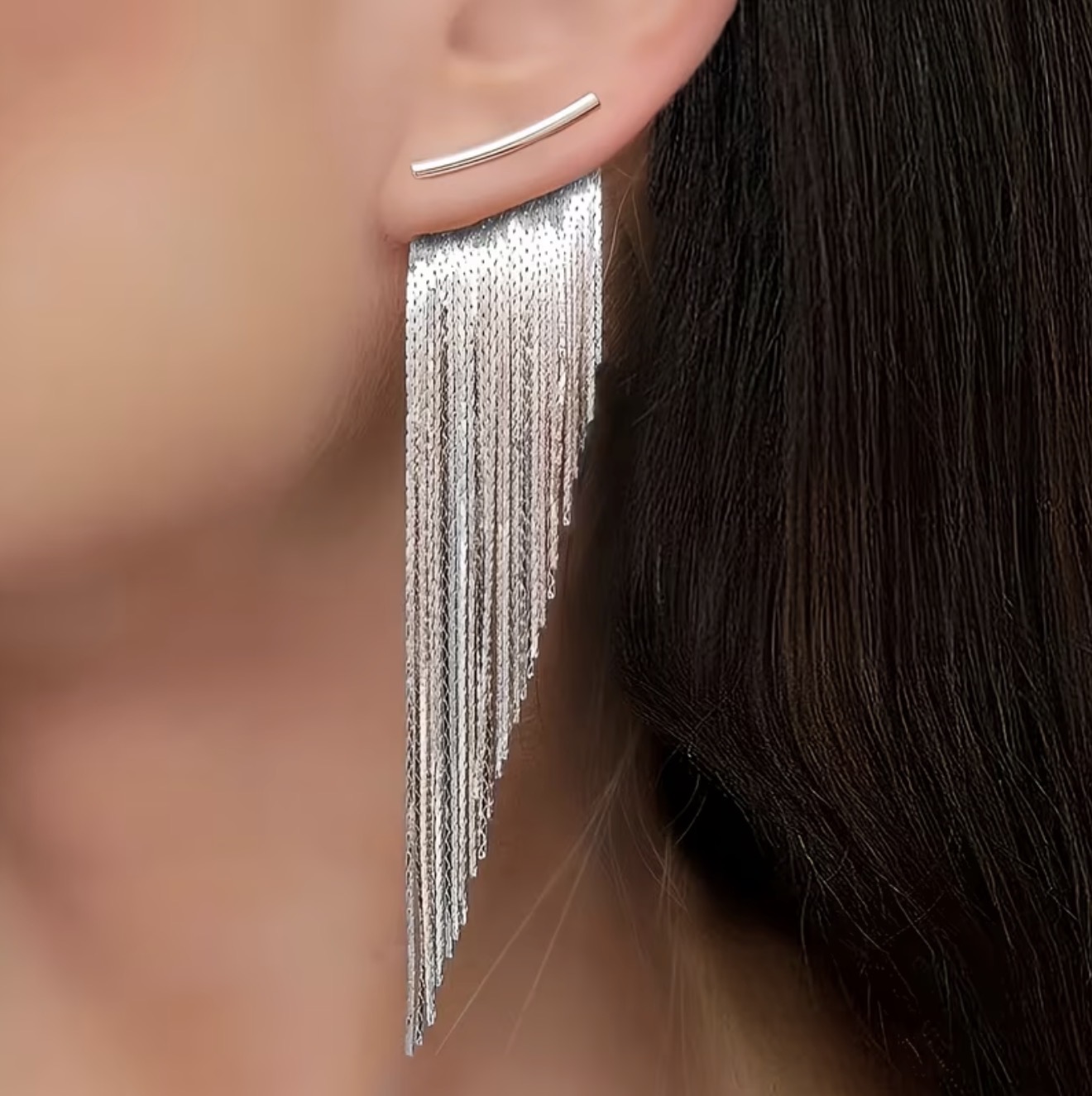 Disse flotte kædeøreringe i sølvfinish giver dig et stilrent og sofistikeret look. De fine kæder falder smukt langs halsen og skaber en cool, moderne elegance, der gør dem perfekte til både klassiske og edgy outfits.