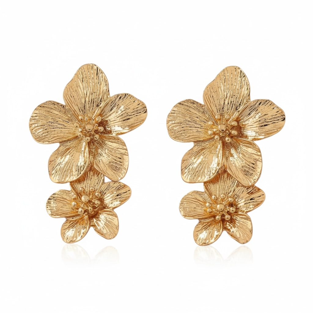 Elegante blomsterøreringe i guldfinish