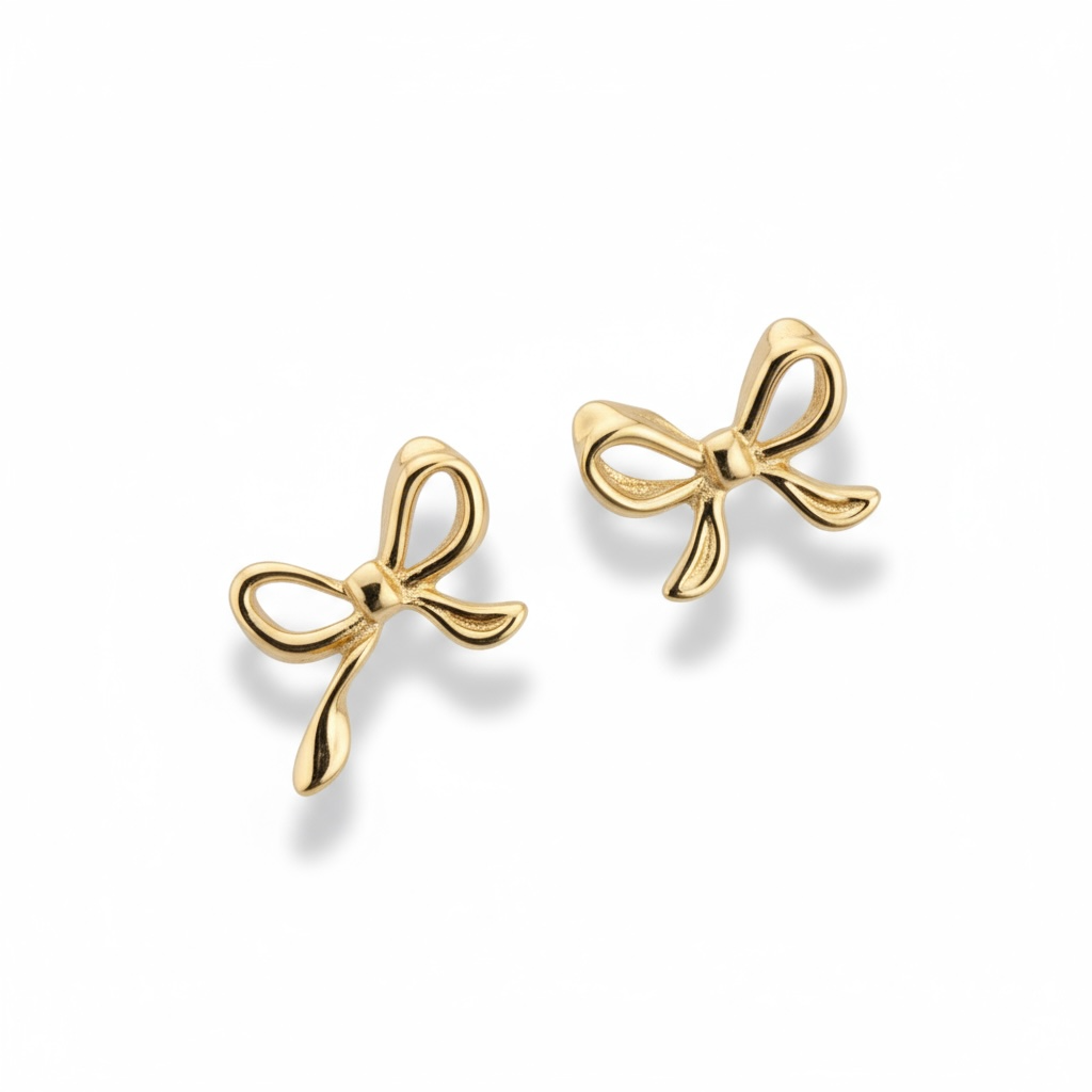 Oplev vores smukke små forgylte øreringe med elegant sløjfe-design. Perfekte til enhver anledning, de tilføjer et strejf af klassisk skønhed og raffinement til dit look.