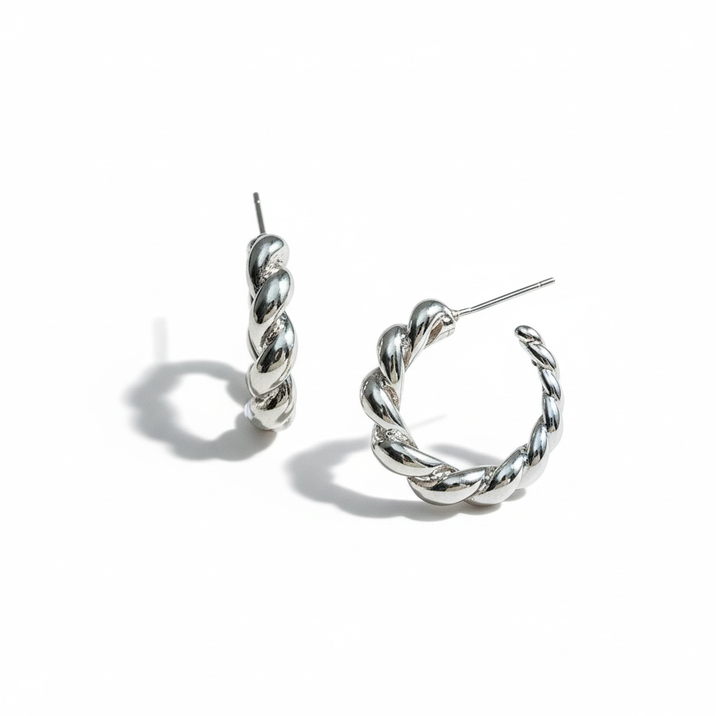 Snoede hoops øreringe i sølv. Et tidløst smykke, der kombinerer elegance med moderne design. Perfekte til enhver lejlighed, de tilføjer et sofistikeret touch til din stil.