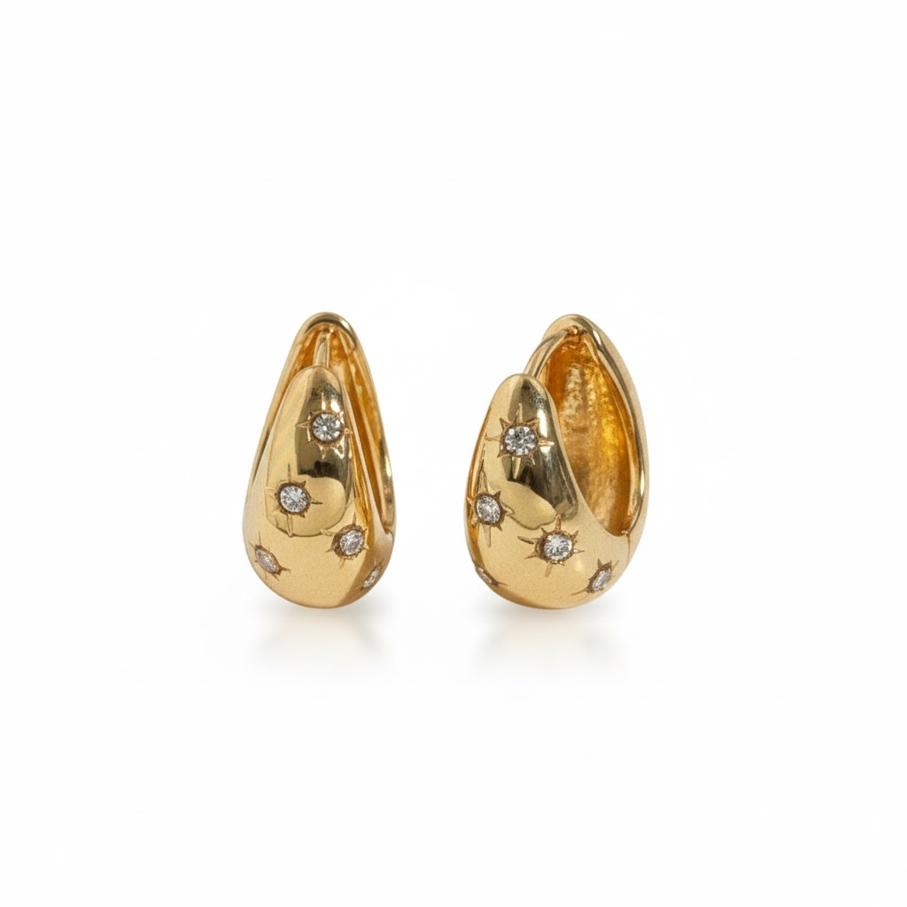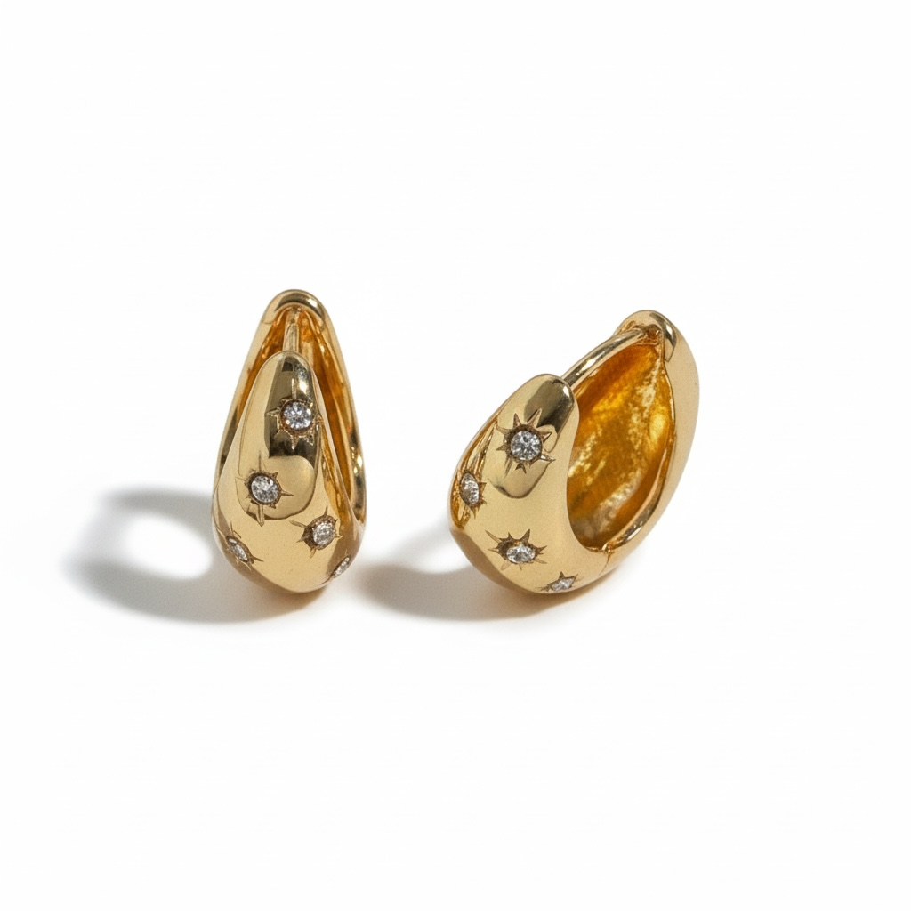 Disse elegante hoops med zirkonia sten tilføjer et strejf af glamour til enhver påklædning. De glitrende sten fanger lyset og fremhæver din unikke stil med tidløs skønhed.