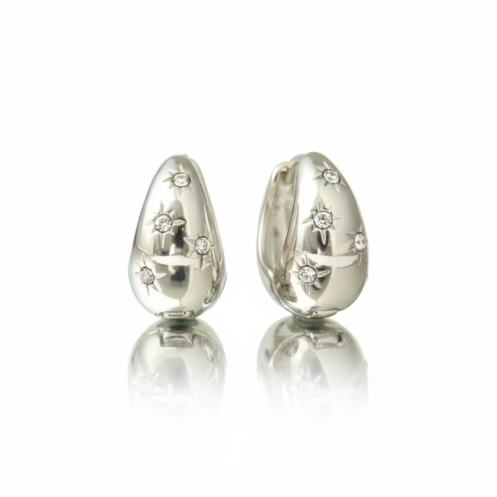 Disse elegante hoops med zirkonia sten tilføjer et strejf af glamour til enhver påklædning. De glitrende sten fanger lyset og fremhæver din unikke stil med tidløs skønhed.