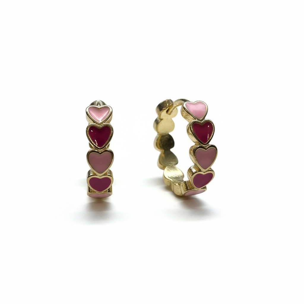 Øreringe med de sødeste lyserøde og røde hjerter - Forgyldt