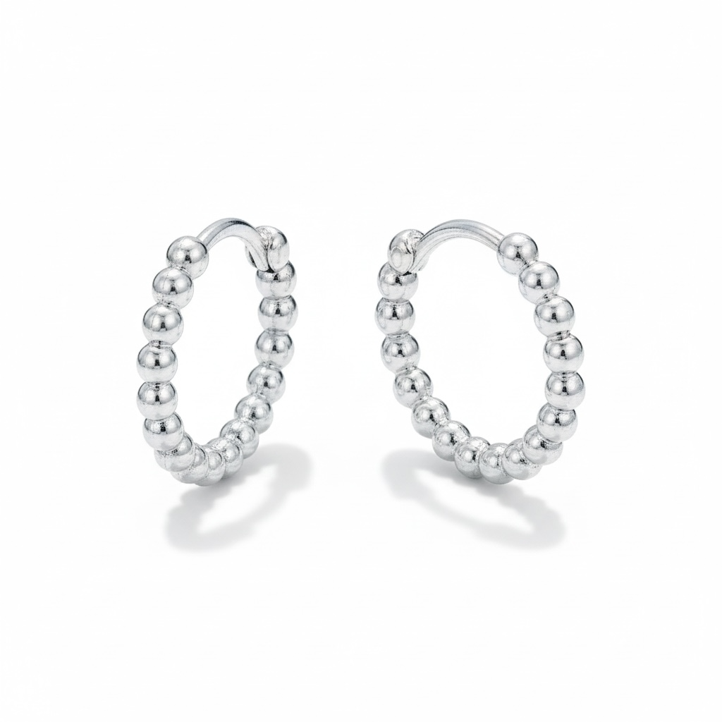 Disse stilrene hoop-øreringe har et moderne og minimalistisk design med små, afrundede kugler hele vejen rundt. Det enkle formsprog giver et elegant og tidløst udtryk, som passer perfekt til både hverdag og fest.