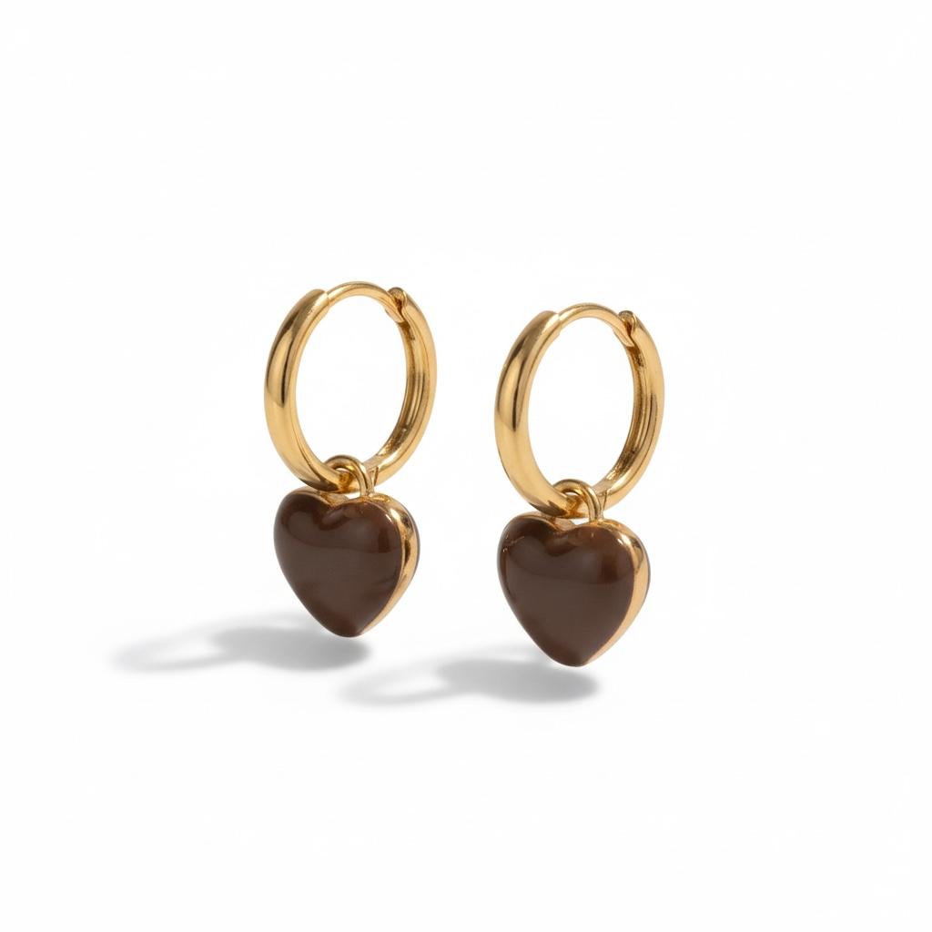 Disse elegante øreringe med brune hjerter tilføjer et strejf af charme og romantik til enhver påklædning, hvilket gør dem til det perfekte tilbehør til enhver anledning.