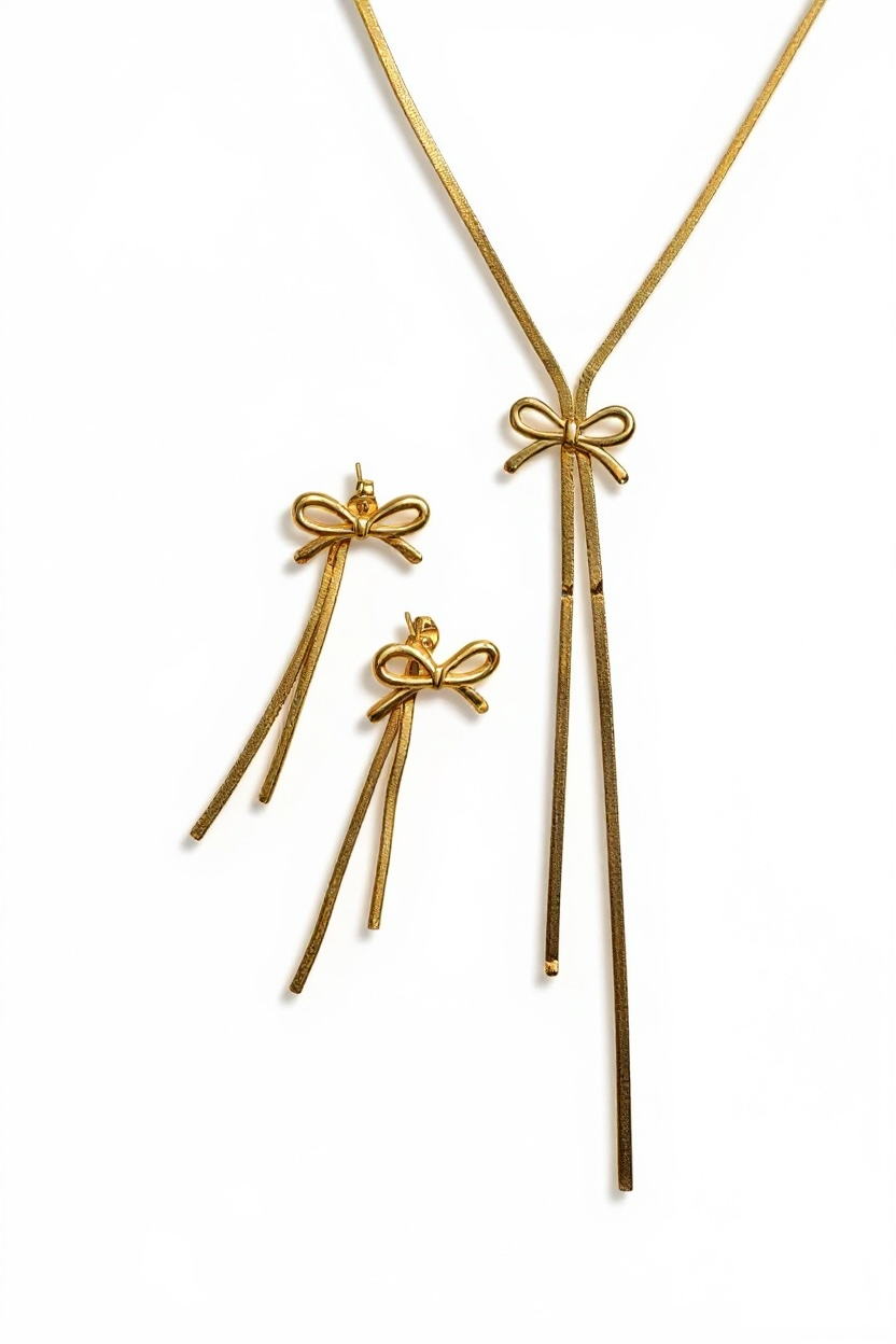 Klassisk enkel smykke sæt med sløjfer - Forgyldt