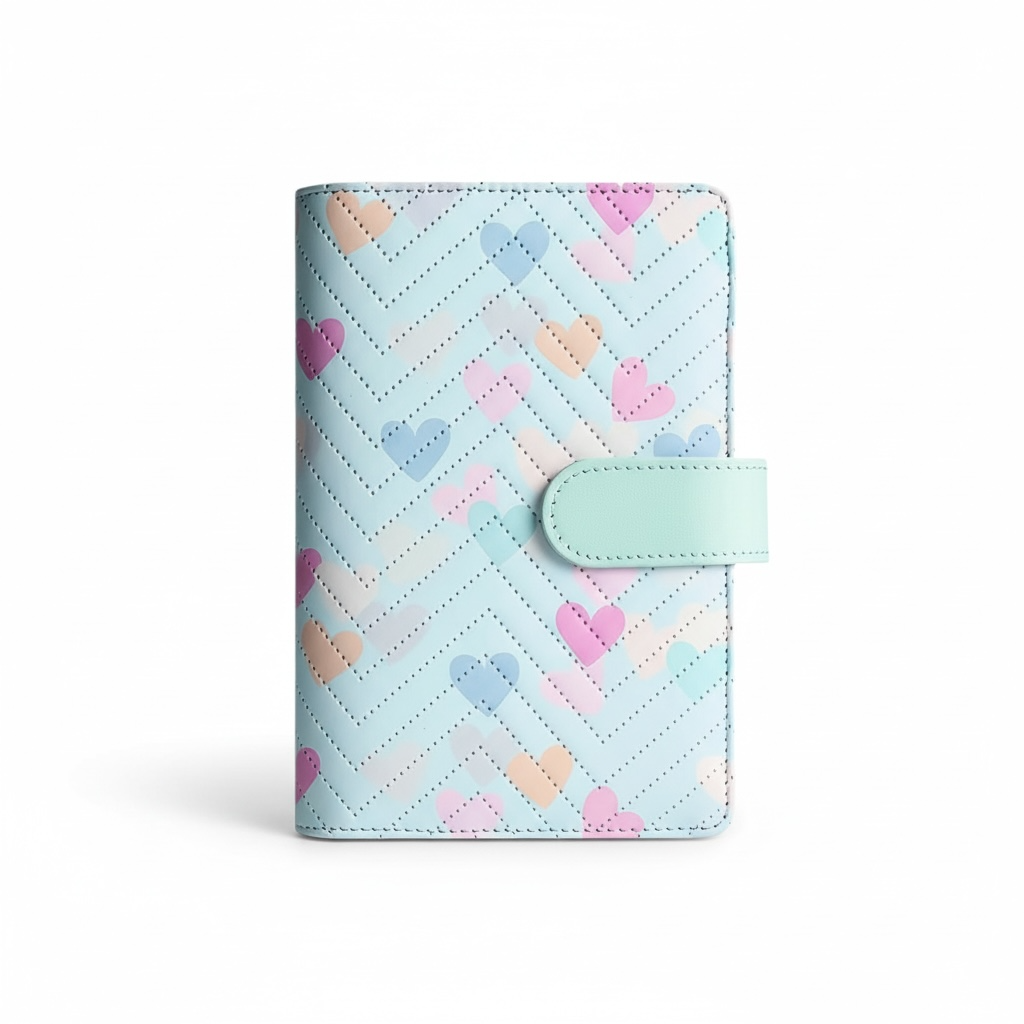 A6 Cash Stuffing Bog – Lyseblå med Pastel Hjerter